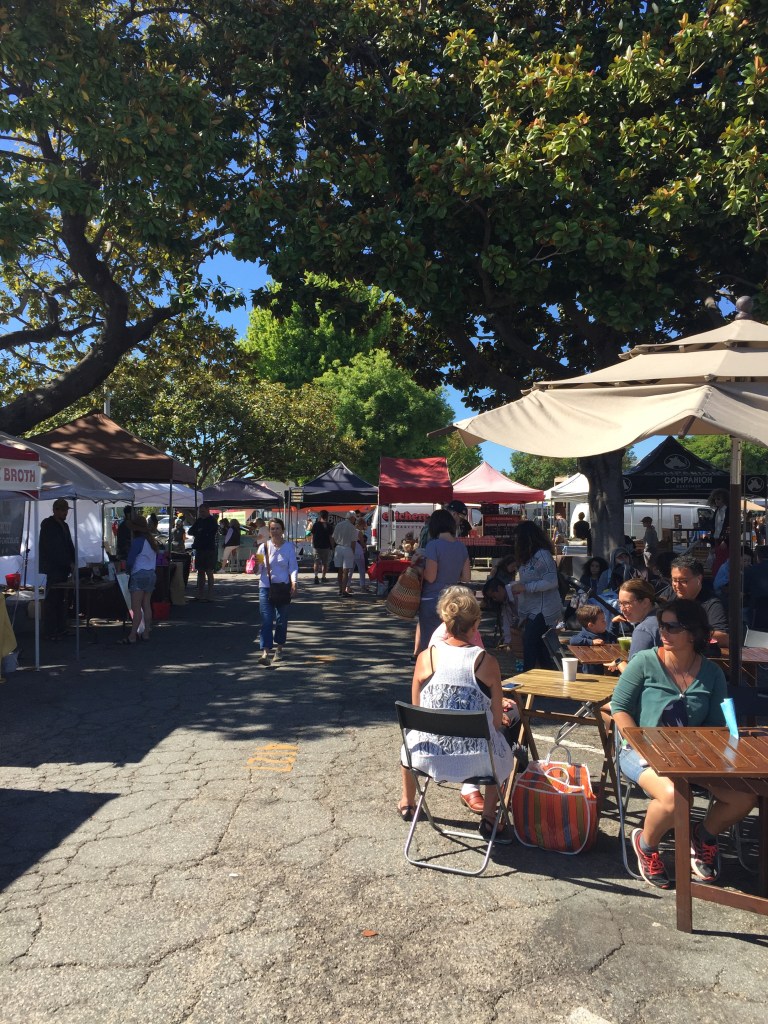 Next I followed the block along until I heard louder music from a radio station, playing from speakers located by the local market – the Santa Cruz Farmers Market- which was shaded under some twisted trees in a quaint little square. The marquees colourfully brought, what would normally be a dingier area, to life and the bustle of people drew you in when they chatted about cooking herbs, which soap is best and the quality of tomatos that were the larger than my head!