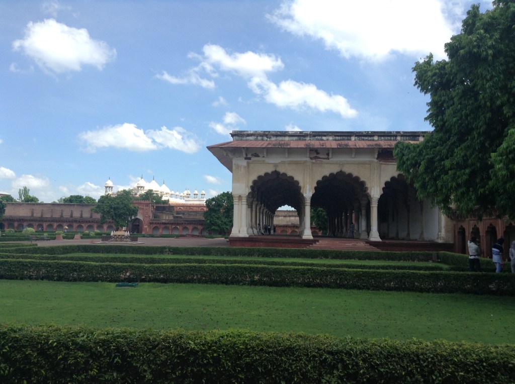 The impressive red sandstone walls and inner palaces and gardens were incredible to walk through, with their grandeur, height, intricate carvings and details, and the fact that you could see the Taj Mahal from the parapet across the vast Yamuna River to the south-west.